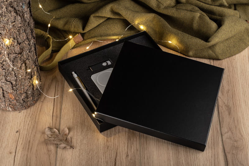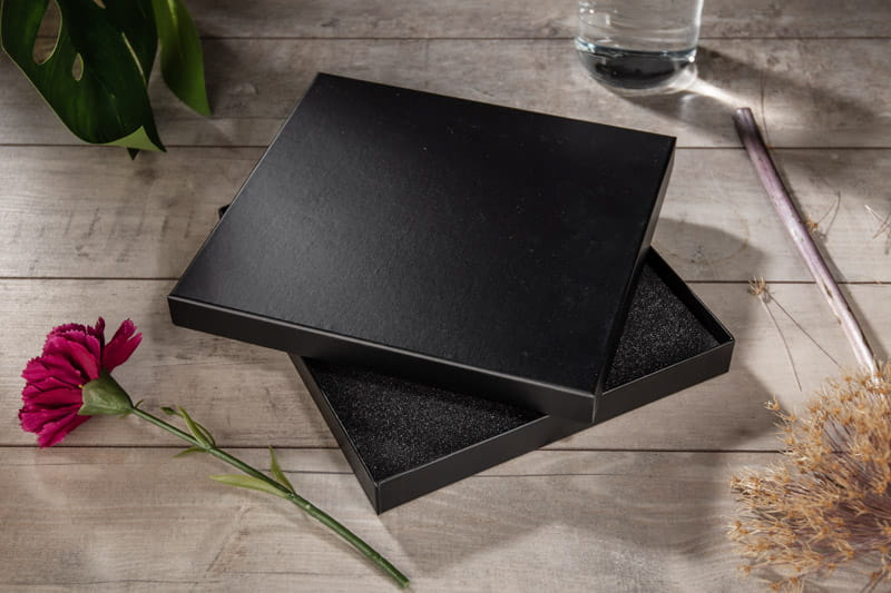 Czarne pudełko wykonane z mocnego, solidnego materiału, matowe dla lepszego efektu. Wewnątrz wyłożone jest pianką, którą można dostosować pod wybrane produkty. Możliwość stworzenia własnego zestawu.Pudełko sprzedawane jest bez wyposażenia. Wyprodukowano w Polsce.